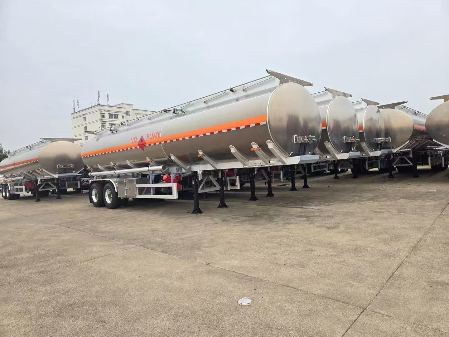 The side and rear protection are bolted together. The cross-sectional size of the rear protection device (width × height) is 80 × 100 (mm). The height of the rear protection from the ground is 540mm. Aluminum tanker trailer has unparalleled corrosion resistance than steel.