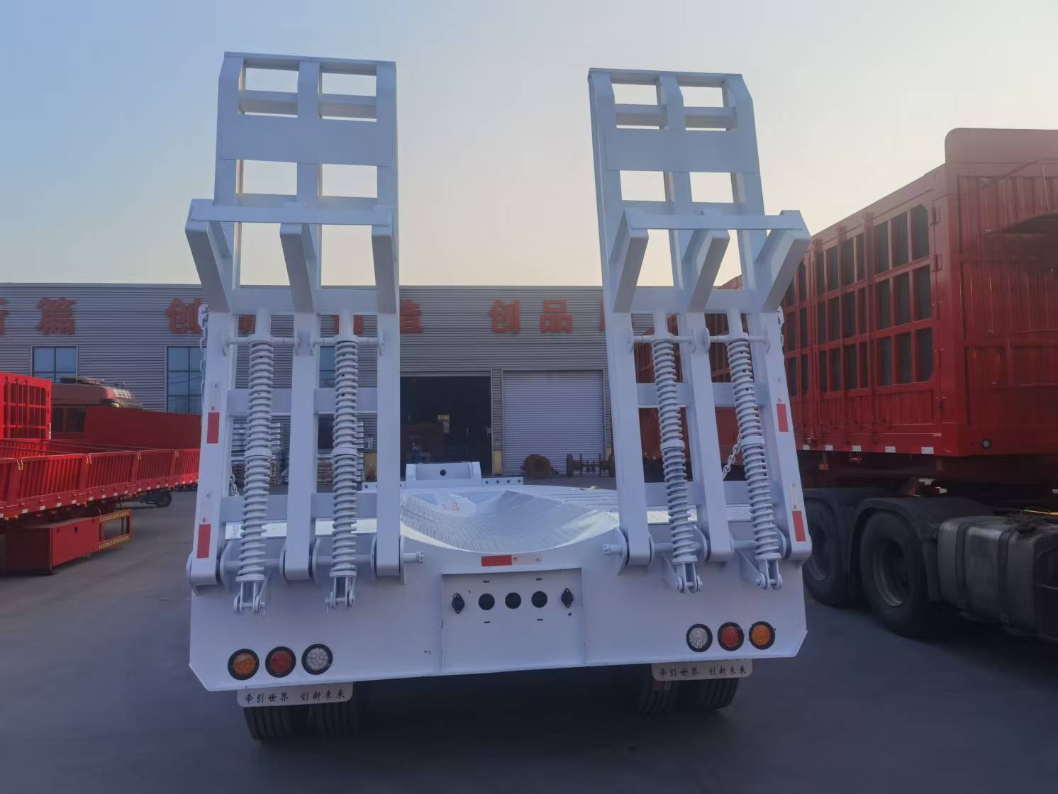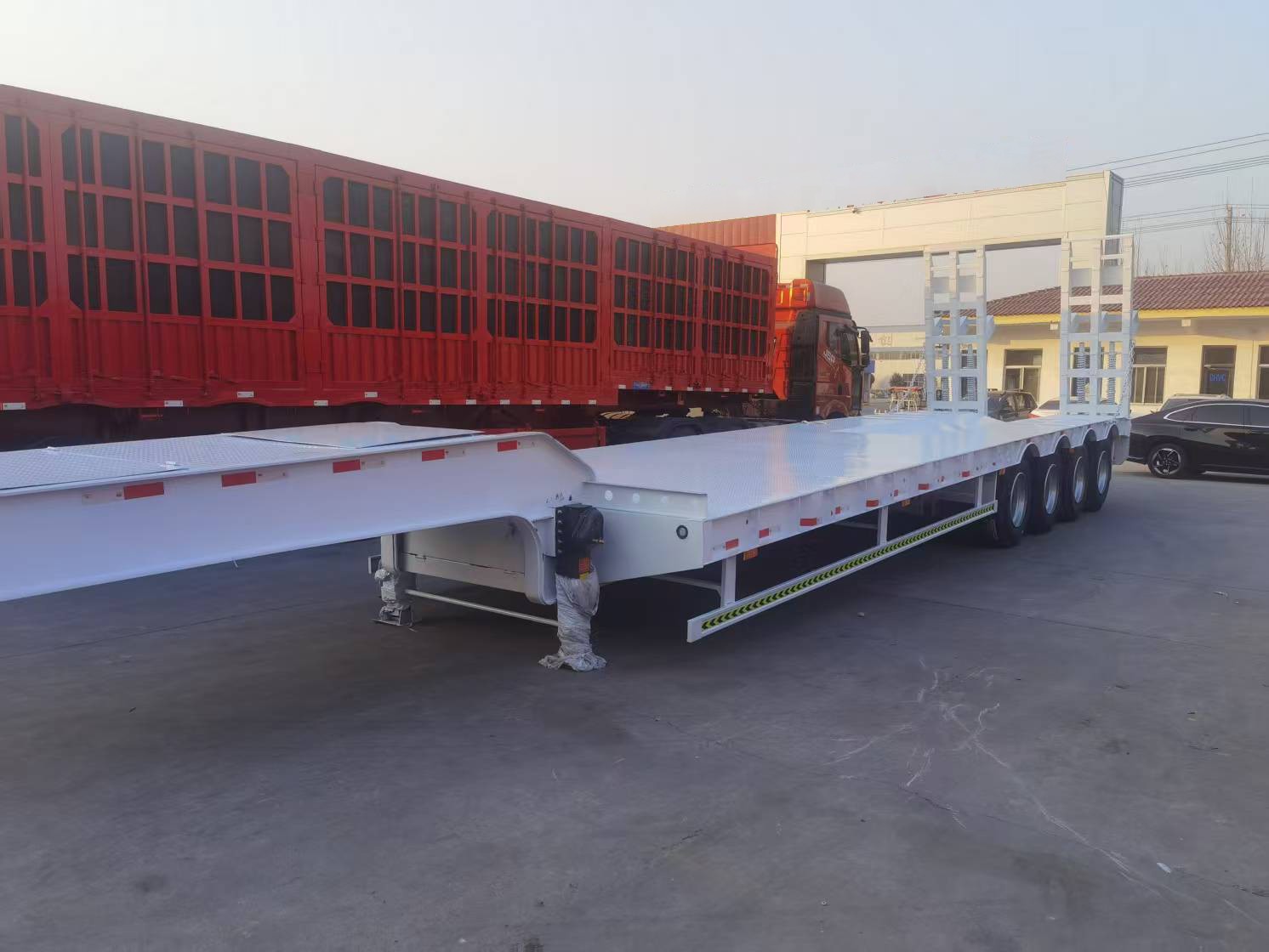 The design of 100 Ton low bed truck is flexible and can be customized according to actual needs. Different carriage lengths, widths and heights can be selected according to the characteristics of the goods and transportation needs to adapt to different types of cargo transportation.